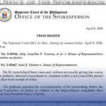 Walang inilabas na temporary restraining order ang Korte Suprema laban sa impeachment proceedings ng Kamara