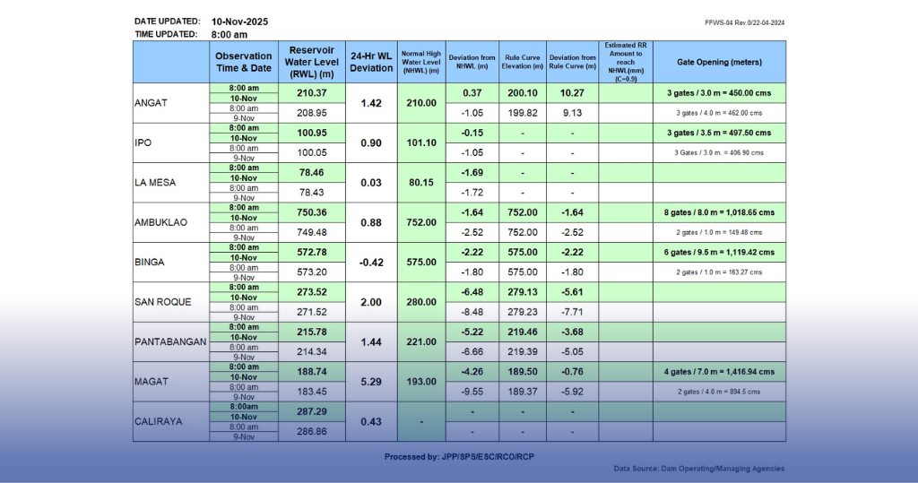Walong gates naman ang binuksan sa Ambuklao Dam sa Benguet, na nagpapakawala ng 1,108.65 CMS ng tubig, habang anim na gates sa Binga Dam ang nagre-release ng 1,119.42 CMS ng tubig.