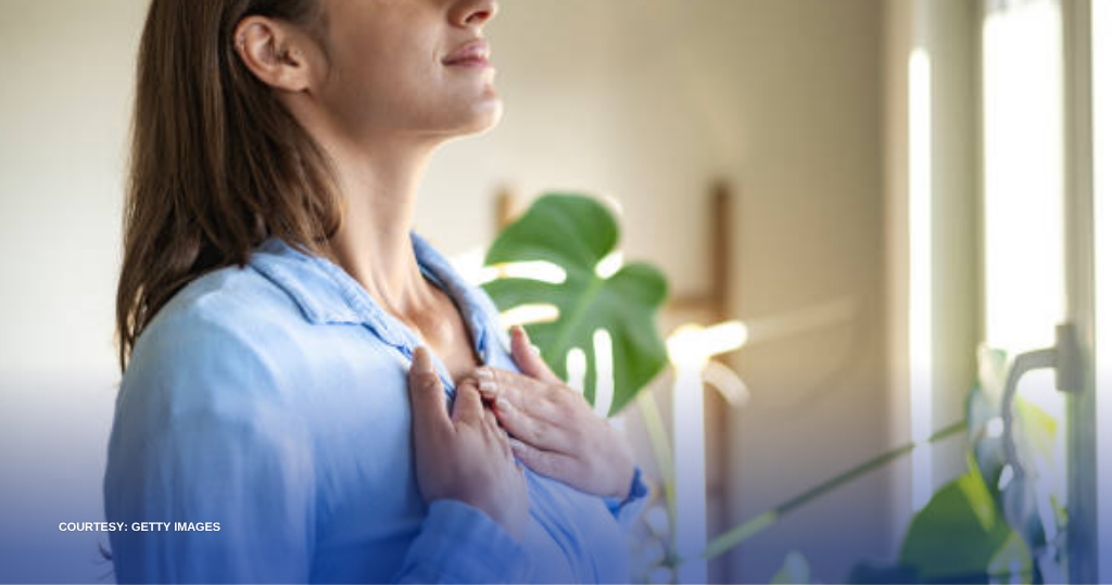 Una, exhale slowly. Huminga ng malalim, mag-pause kahit isa o hanggang dalawang segundo, at saka mag-exhale nang dahan-dahan na mas mahaba pa sa iyong inhale. Mas mahalaga ang mahabang exhale dahil tila sinasabi nito sa katawan na ligtas ka.