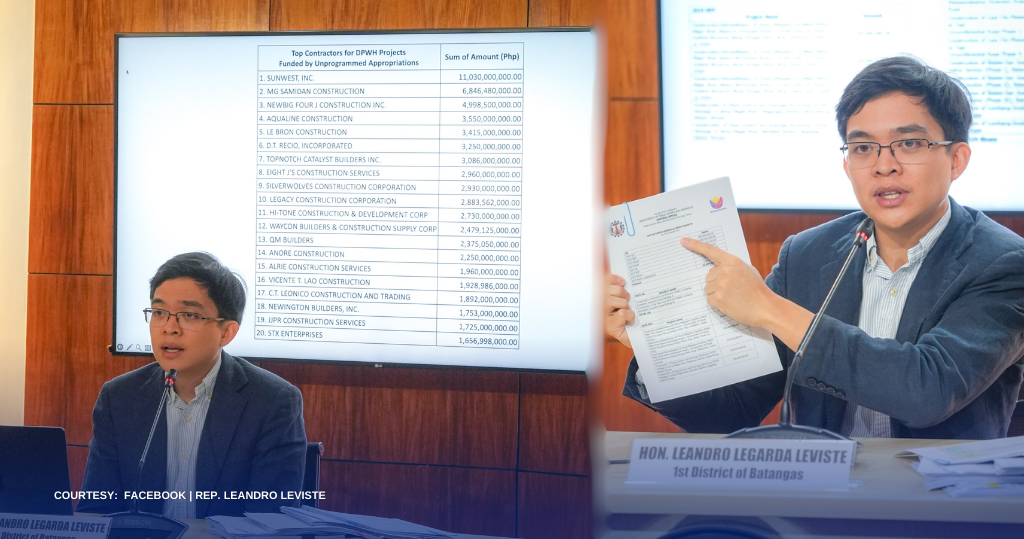 BATANGAS REP. LEANDRO LEVISTE, ISINAPUBLIKO ANG MGA CONTRACTOR NA NAKAKUHA NG PINAKAMALALAKING KONTRATA MULA SA UNPROGRAMMED FUNDS NOONG 2023 AT 2024
