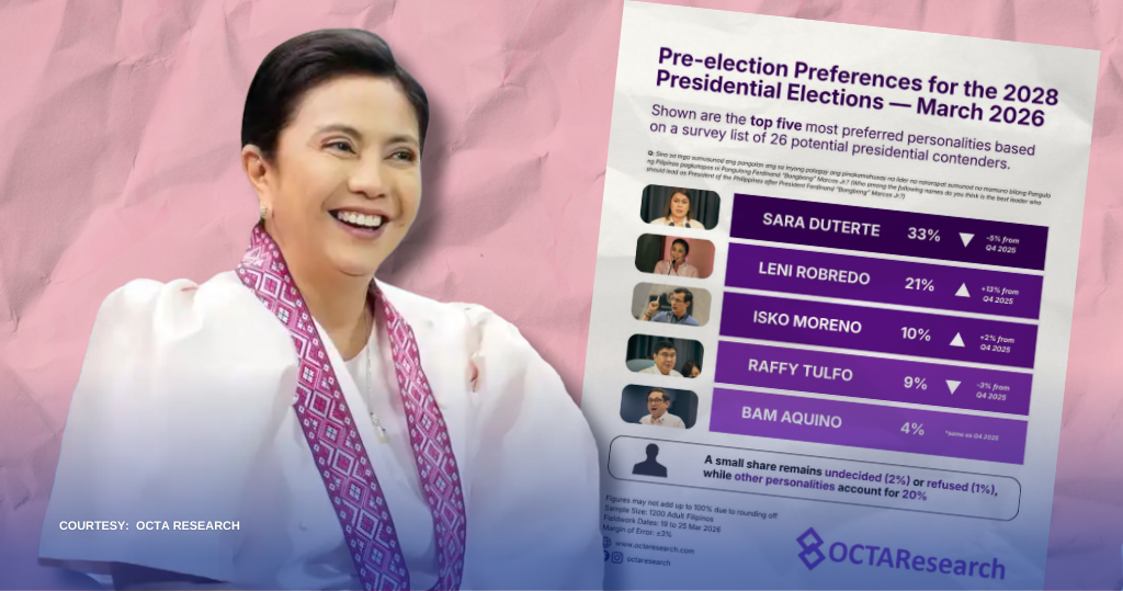 Tumaas ang bilang ng mga botanteng pabor kay dating Vice President at ngayo’y Naga City Mayor Leni Robredo para sa presidential race sa 2028.