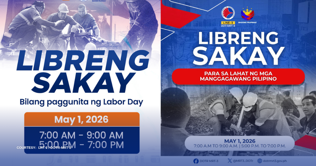 Magkakaloob ng libreng sakay ang Light Rail Transit Line 2 at Metro Rail Transit Line 3 sa pagdiriwang ng Labor Day sa May 1, araw ng Biyernes.