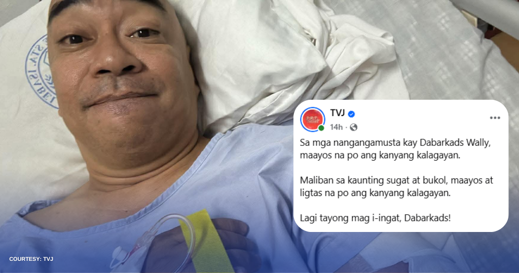 Sa official Facebook page ng TVJ, tiniyak nila sa publiko na nasa maayos at ligtas na kalagayan si Wally, maliban sa kaunting sugat at bukol na tinamo nito sa aksidente.